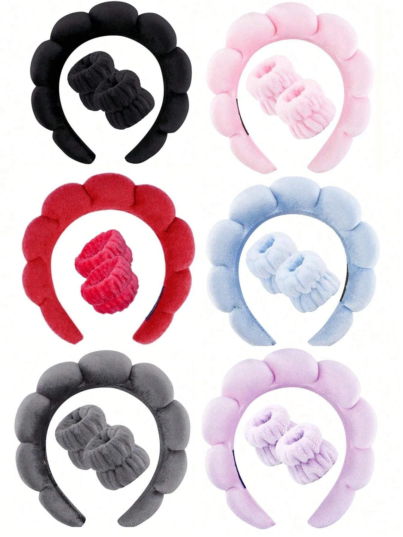 Luksusowy zestaw składający się z trzech opasek spa wykonanych z miękkiego włókna, idealny do mycia twarzy i pielęgnacji skóry. Zestaw zawiera również wygodną opaskę na nadgarstek. Doskonałe akcesoria do włosów dla kobiet, które chcą wyglądać stylowo podczas makijażu.