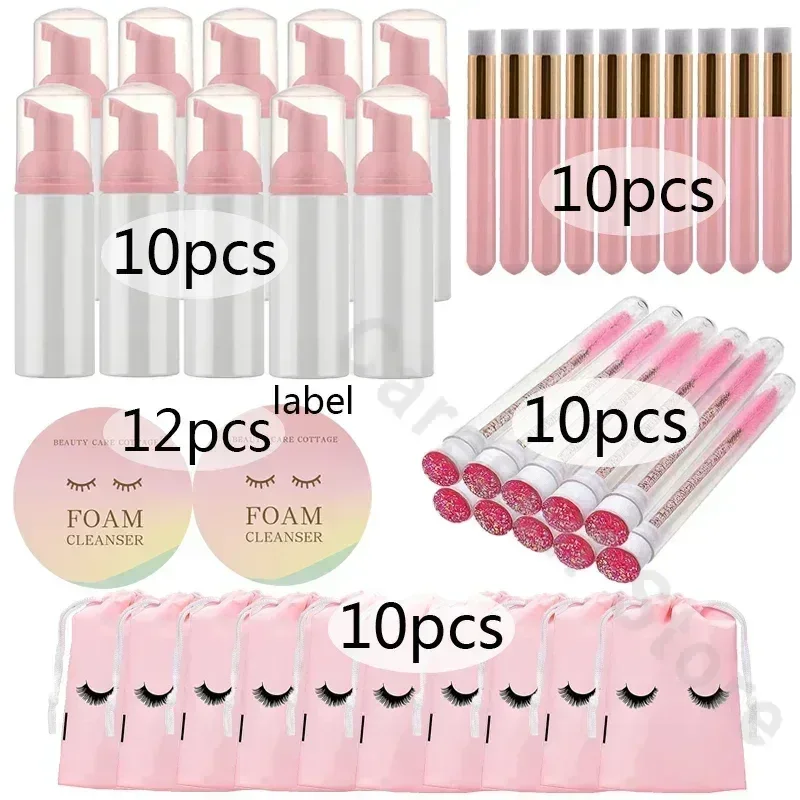 Zestaw zawierający 40 sztuk pustych butelek o pojemności 60ML, idealnych do aplikacji szamponów do rzęs. W zestawie znajduje się również 12 sztuk etykiet, które umożliwiają oznaczenie zawartości. Butelki wykonane są z plastiku i wyposażone w dozownik, co sprawia, że są niezwykle praktyczne w użyciu. Doskonałe narzędzie do pielęgnacji rzęs oraz do makijażu.