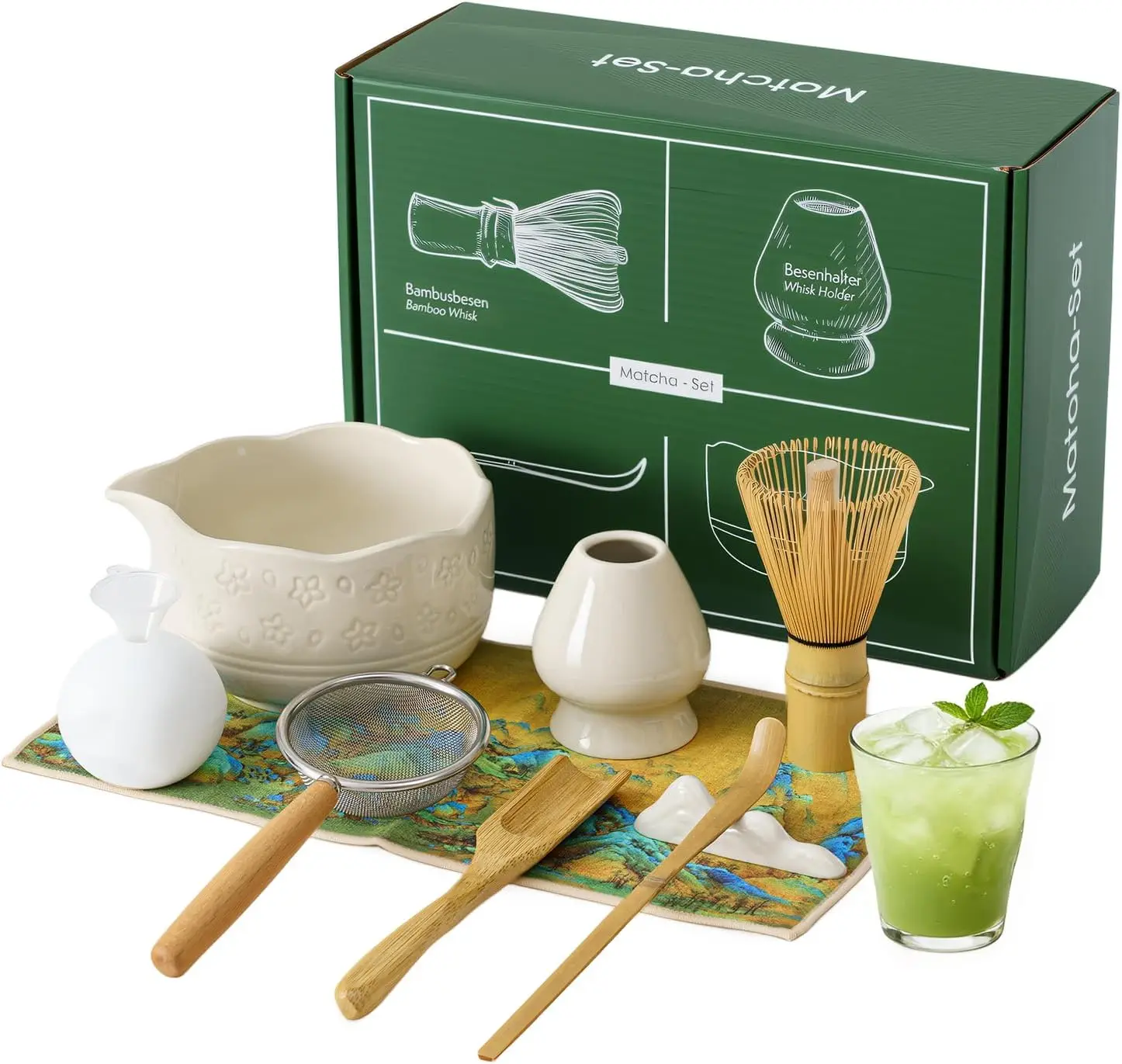Zanurz się w tradycji japońskiego parzenia herbaty z tym 9-częściowym zestawem do herbaty matcha. W skład zestawu wchodzi bambusowy ubijak, łyżeczka, miska do matcha oraz uchwyt na ubijak. Idealny dla miłośników herbaty, którzy pragną przygotować napój w autentyczny sposób. Bezpieczne materiały i staranne wykonanie sprawiają, że każda herbata stanie się prawdziwą ucztą.