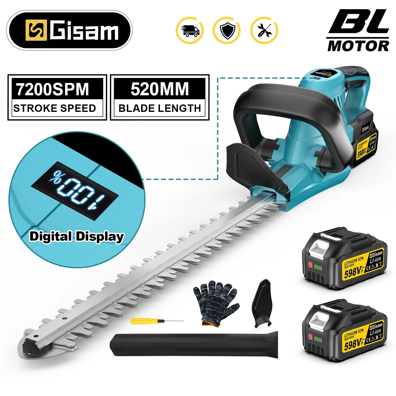 Gisam bezprzewodowy elektryczny trymer do żywopłotu o mocy 2000W i prędkości 7200SPM. Idealny do przycinania krzewów i pielęgnacji ogrodu. Narzędzie zasilane akumulatorem Makita 18V, zapewniające wygodę użytkowania bez kabli. Sprawdzi się w każdym ogrodzie, ułatwiając prace związane z pielęgnacją roślin.