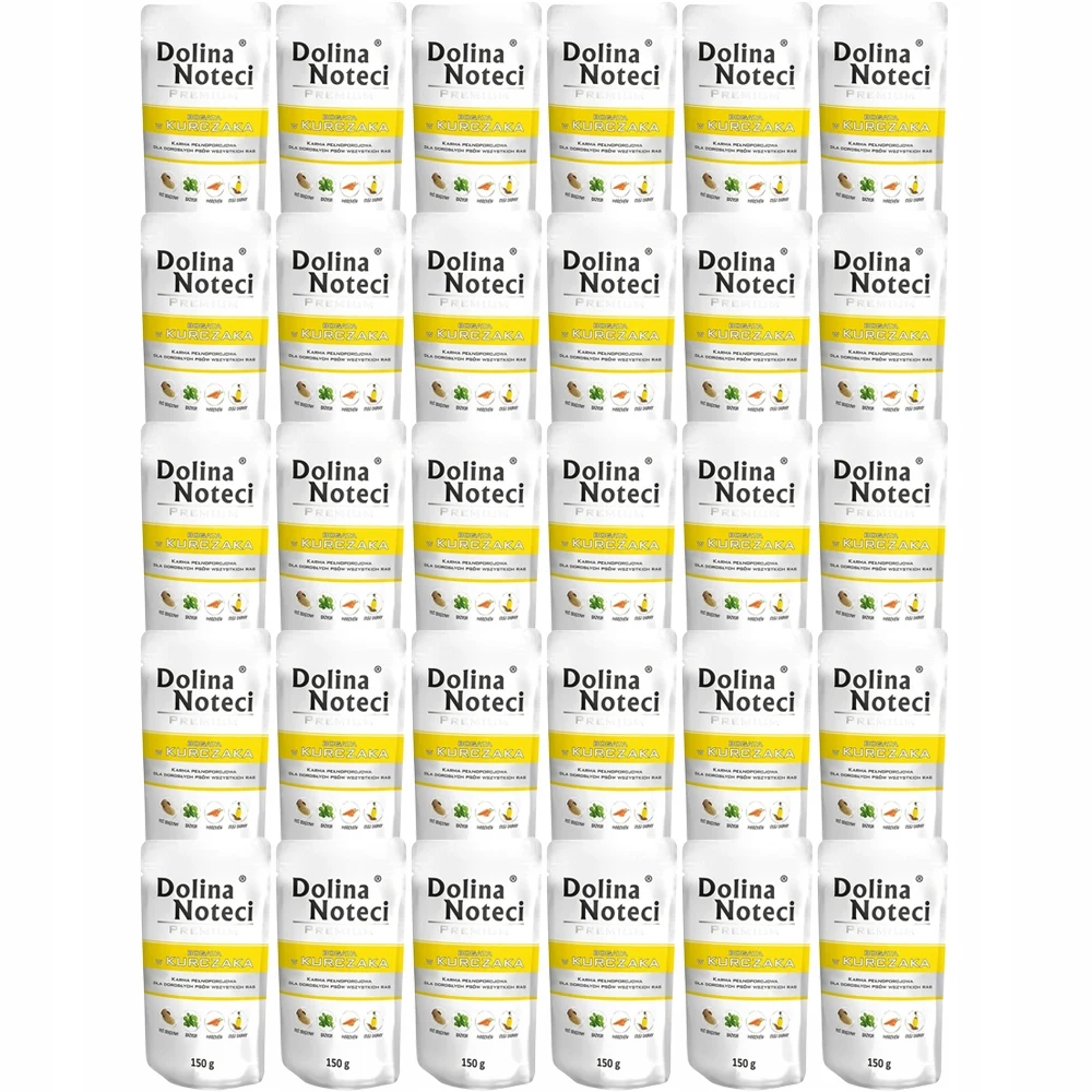 Dolina Noteci Premium to doskonałej jakości karma dla psów, zawierająca wysokiej jakości mięso z kurczaka. Opakowanie zawiera 30 porcji po 150g, co zapewnia wygodę w codziennym karmieniu. Karma jest bogata w białko i składniki odżywcze, wspierające zdrowie i witalność Twojego pupila.