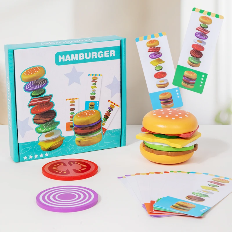 Drewniany hamburger Montessori to idealna zabawka do udawania, która rozwija kreatywność i zdolności manualne najmłodszych. Dzięki symulacji jedzenia oraz grze w dopasowywanie i układanie z kartami, dzieci od 2 lat mogą bawić się i uczyć jednocześnie. To doskonały prezent dla maluchów, który łączy edukację z radością zabawy!
