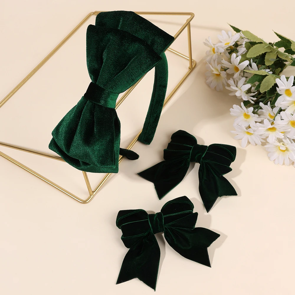 Stylowa, duża opaska do włosów wykonana z miękkiego aksamitu, ozdobiona elegancką kokardą. W zestawie znajdują się także dwie spinki do włosów. Idealna dla dziewczynek oraz kobiet, doskonała na co dzień. Opaska jest regulowana, co zapewnia komfort noszenia. Vintage design sprawia, że jest to must-have w każdej kolekcji akcesoriów do włosów.