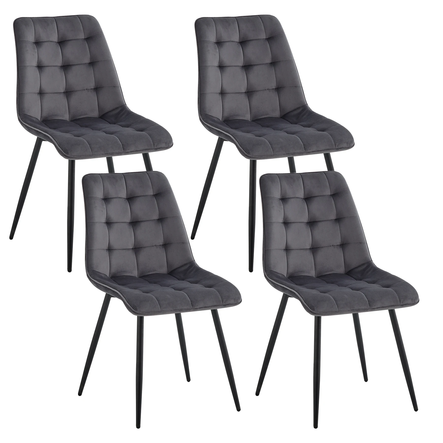EGOONM Zestaw 4 aksamitnych krzeseł do jadalni z metalowymi nogami