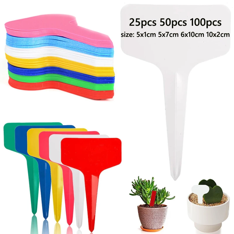 Zestaw 25, 50 lub 100 sztuk etykiet ogrodowych, idealnych do sortowania i oznaczania roślin. Wykonane z trwałego plastiku, umożliwiają łatwe pisanie i identyfikację roślin w ogrodzie. Dostępne w różnych kolorach, doskonałe do ułatwienia organizacji i pielęgnacji roślin.
