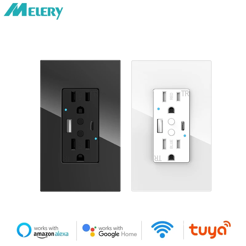 Melery Tuya WIFI Smart US Wall Sockets to nowoczesne gniazdko, które umożliwia zdalne sterowanie przez aplikację oraz asystentów głosowych takich jak Alexa i Google Home. Wyposażone w dwa gniazda z szybkim ładowaniem USB Type-C PD 20W, idealne do ładowania urządzeń mobilnych. Elegancka szklana powierzchnia dodaje stylu każdemu wnętrzu.