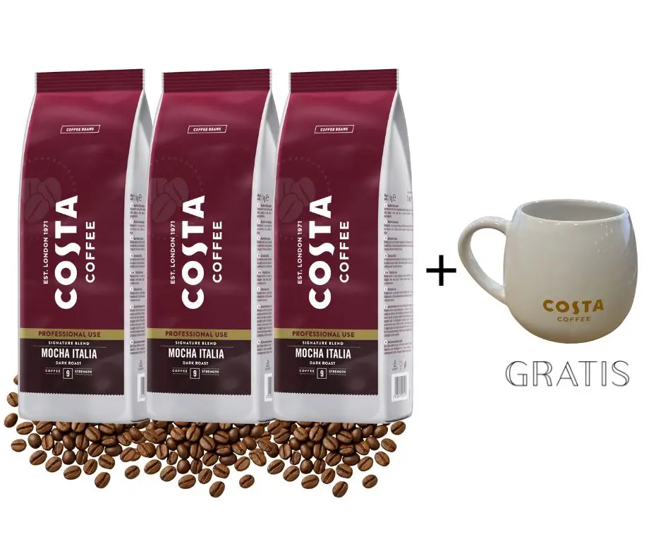 Ciesz się wyjątkowym smakiem kawy ziarnistej Costa Pro Signature Dark w zestawie 3x1kg. Idealna dla miłośników intensywnych aromatów i głębokiego smaku. Dodatkowo, kupując ten zestaw, otrzymasz stylowy kubek Costa gratis, który pozwoli Ci delektować się ulubioną kawą w najlepszym stylu. Perfekcyjny wybór do biura lub na prezent dla kawoszy!