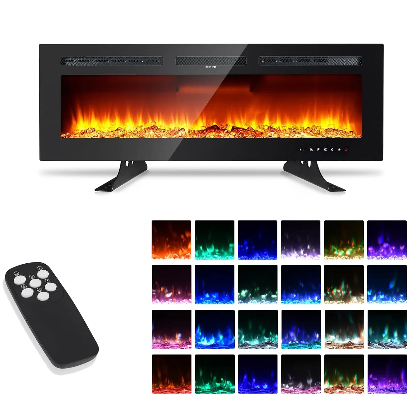 Elektryczny kominek ścienny 3 w 1 z mocą grzewczą 1800W, oferujący 12 trybów kolorów efektu płomienia. Zdalne sterowanie oraz timer do 12 godzin sprawiają, że jest to idealne rozwiązanie do każdego wnętrza.
