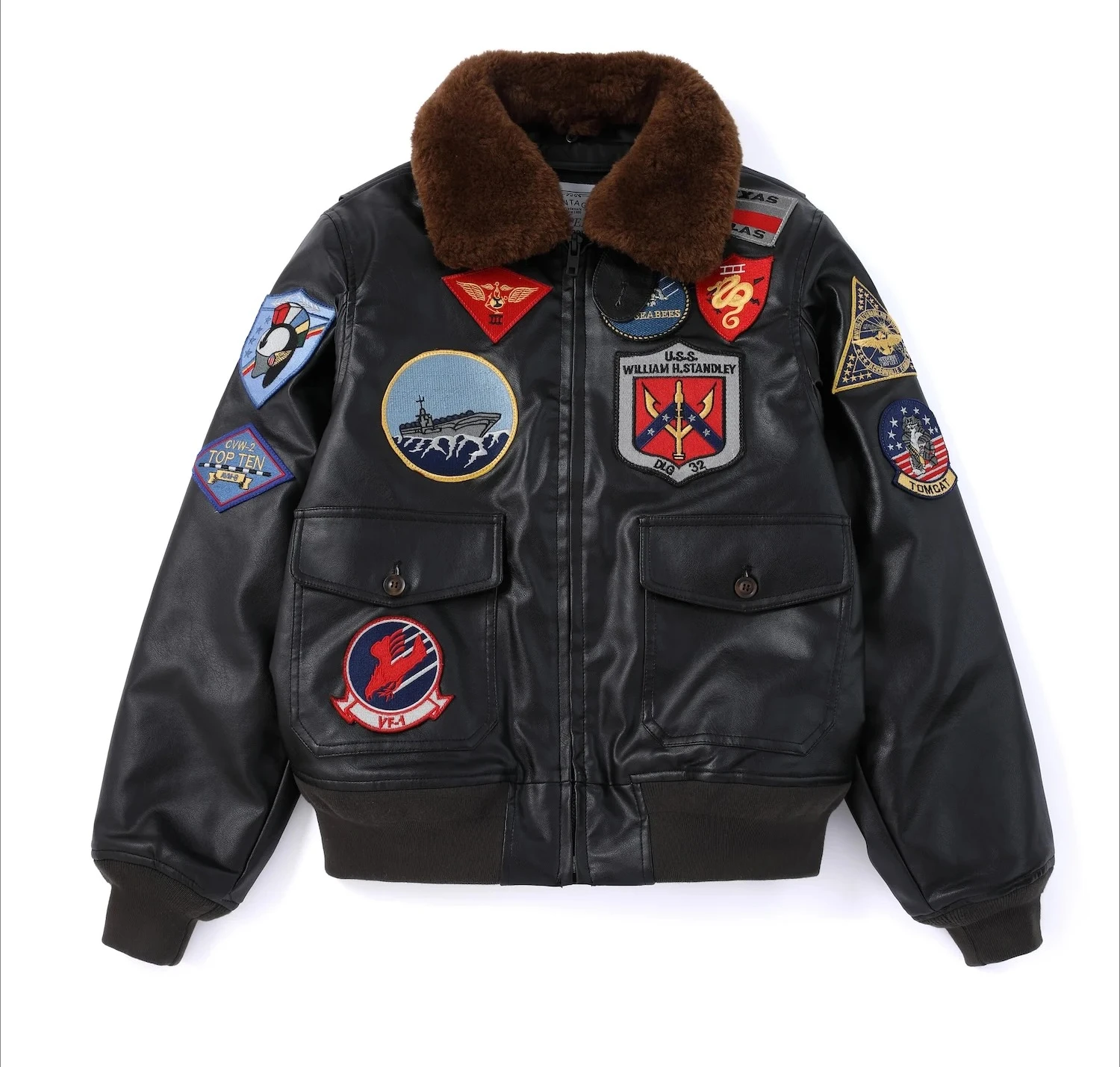 Męska kurtka wojskowa w stylu pilota, inspirowana filmem Top Gun. Wykonana z wysokiej jakości skóry, idealna na chłodniejsze dni. Posiada miękkie futerko oraz haftowaną naszywkę, co nadaje jej unikalnego charakteru. Doskonały wybór dla miłośników stylu aviator oraz klasycznego, militarnego wyglądu.