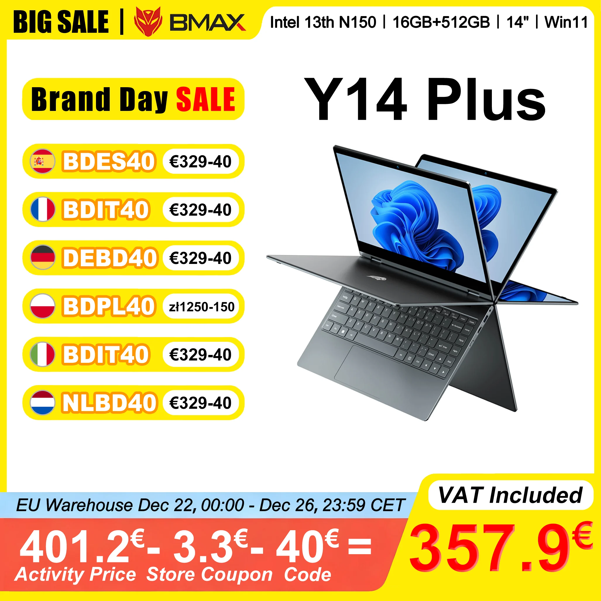 Laptop BMAX Y14 Plus to wyjątkowy, 14-calowy notebook z ekranem dotykowym, napędzany procesorem Intel N150. Wyposażony w 16 GB pamięci RAM i 512 GB pamięci SSD, oferuje doskonałą wydajność i szybkość działania. Dzięki funkcji 360° Convertible, możesz łatwo zmieniać tryb pracy i korzystać z niego w różnych ustawieniach. Ekran o rozdzielczości 1920×1080 IPS zapewnia wyraźny i żywy obraz. Działa na systemie Windows 11, co gwarantuje nowoczesne funkcje i wygodę użytkowania.