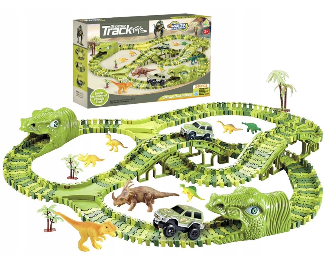 Odkryj niesamowity świat wyścigów z Mega Torem Wyścigowym XXXL Dinozaur Dino Park! Zestaw składający się z 240 elementów zapewni niezapomniane chwile zabawy zarówno dla dzieci, jak i dorosłych. Dzięki różnorodnym torom, dinozaurom i samochodom wyścigowym, każdy wyścig będzie inny. Idealny do rozwijania wyobraźni i kreatywności. Wykonany z wysokiej jakości materiałów, jest bezpieczny dla dzieci. Zamów już dziś i przenieś się do dinozaurzej krainy pełnej emocji!