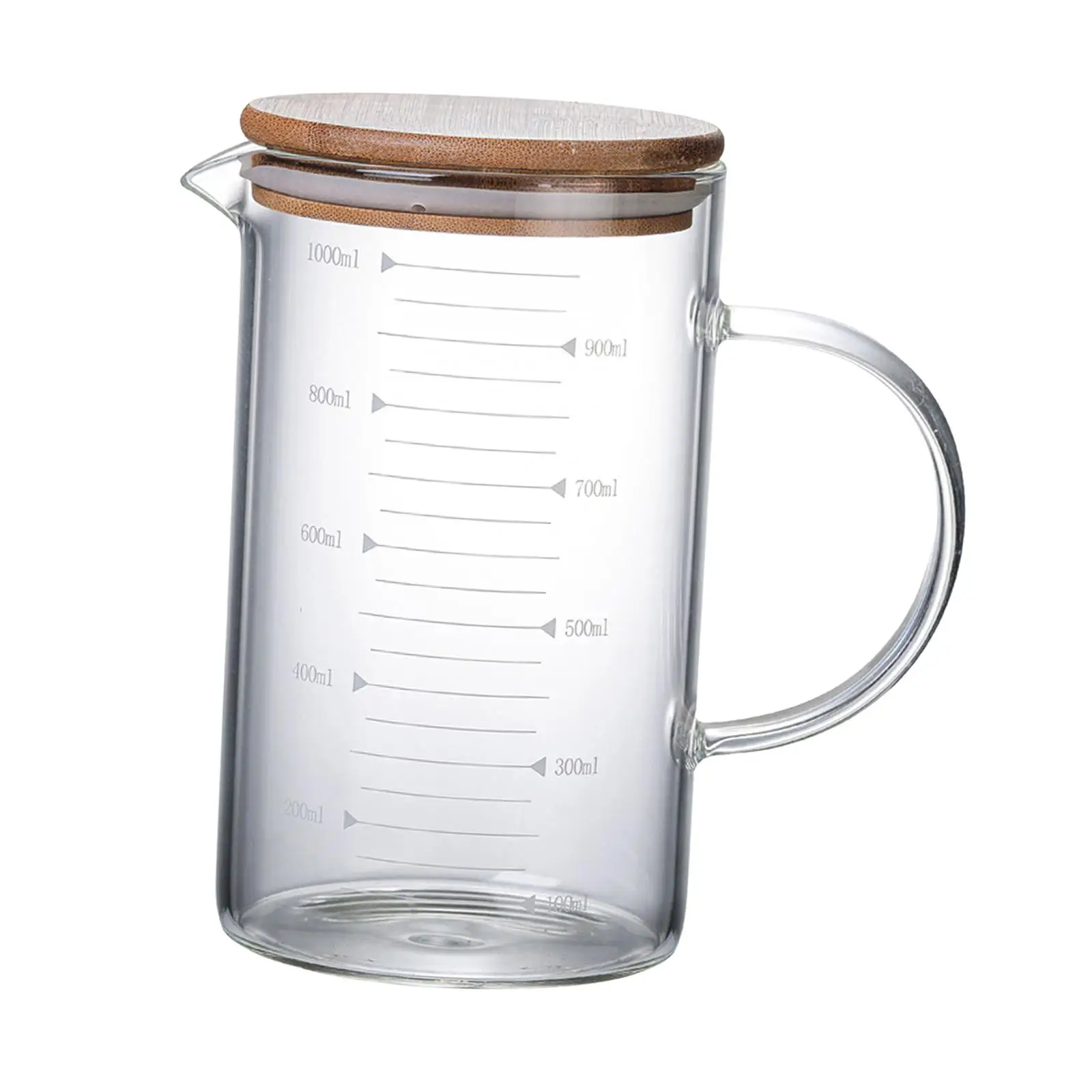 Praktyczna miarka do użytku domowego, idealna do przechowywania soków, mleka, herbaty czy kawy. Wykonana z wysokiej jakości szkła, odporna na wysokie temperatury. Posiada szczelną pokrywkę, co zapewnia dłuższą świeżość napojów. Doskonała do lodówki, a jej elegancki design sprawia, że pasuje do każdej kuchni.