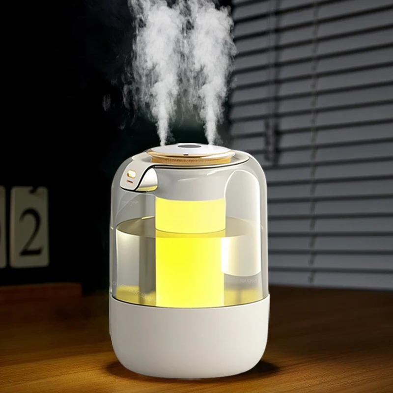 Nawilżacz powietrza o pojemności 2.2L, idealny do domu, sypialni oraz biura. Wyposażony w podwójny system sprayu, zapewnia optymalne nawilżenie powietrza. Dzięki funkcji USB, można go łatwo podłączyć do laptopa lub powerbanka. Dodatkowo, nawilżacz posiada przyjemne podświetlenie nocne, co czyni go idealnym towarzyszem w nocy.