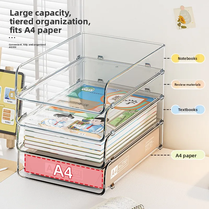 Stylowy i funkcjonalny organizer na dokumenty A4, idealny dla uczniów i profesjonalistów. Pudełko do przechowywania na biurko, które pomoże w utrzymaniu porządku. Może służyć jako półka na książki lub stojak na akta. Dzięki możliwości układania w stosy, doskonale sprawdzi się w każdym biurze czy pokoju. Wykonany z maty PET, co zapewnia trwałość i estetyczny wygląd.