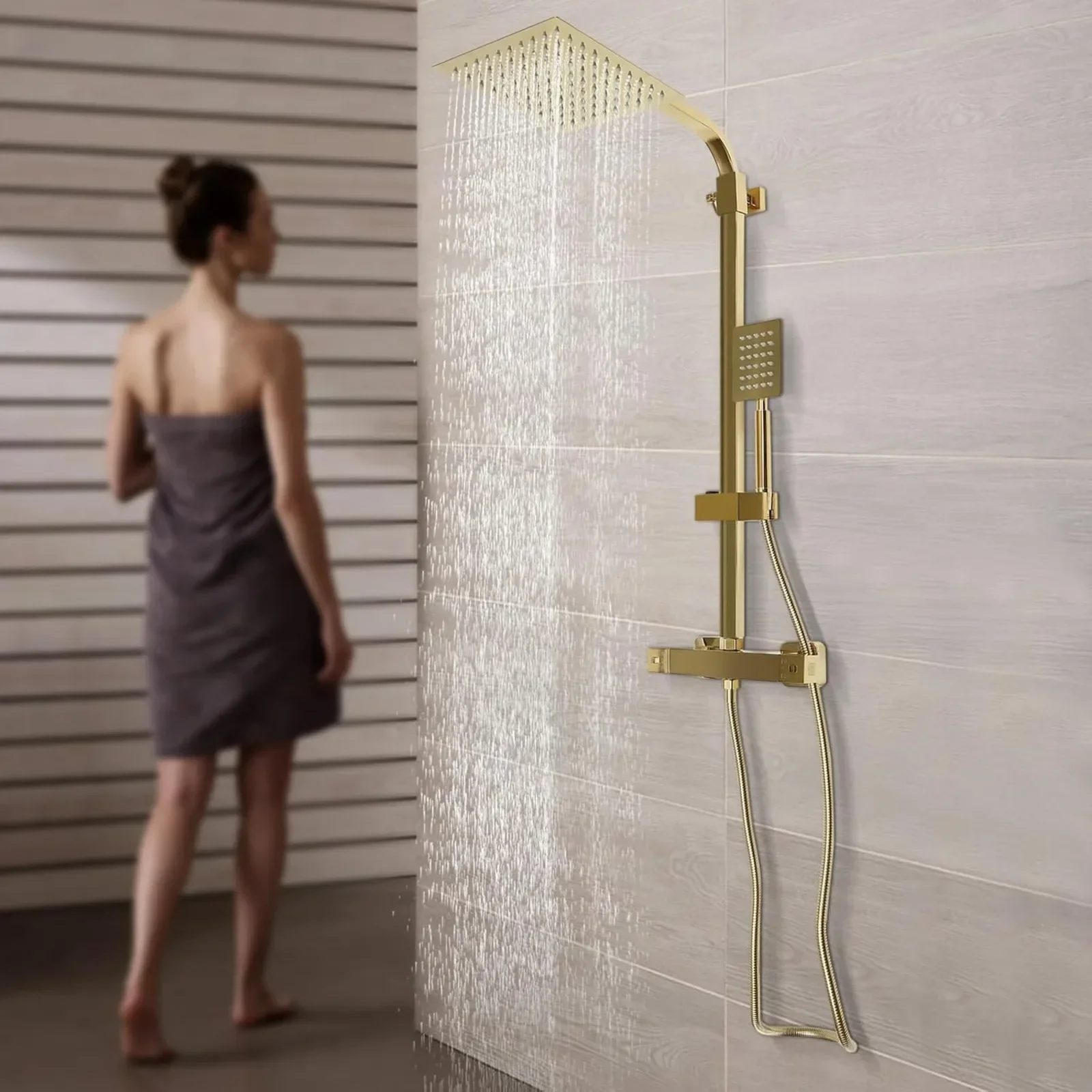 Odkryj nowy wymiar relaksu z naszym zestawem prysznicowym z termostatem. Wykonany z wysokiej jakości mosiądzu i stali nierdzewnej 304, ten elegancki system prysznicowy w kolorze złotym zapewnia nie tylko stylowy wygląd, ale również niezawodność i trwałość. Zestaw obejmuje deszczownicę oraz słuchawki prysznicowe, co sprawia, że codzienna pielęgnacja staje się przyjemnością. Idealny do nowoczesnych łazienek, łączy funkcjonalność z estetyką.