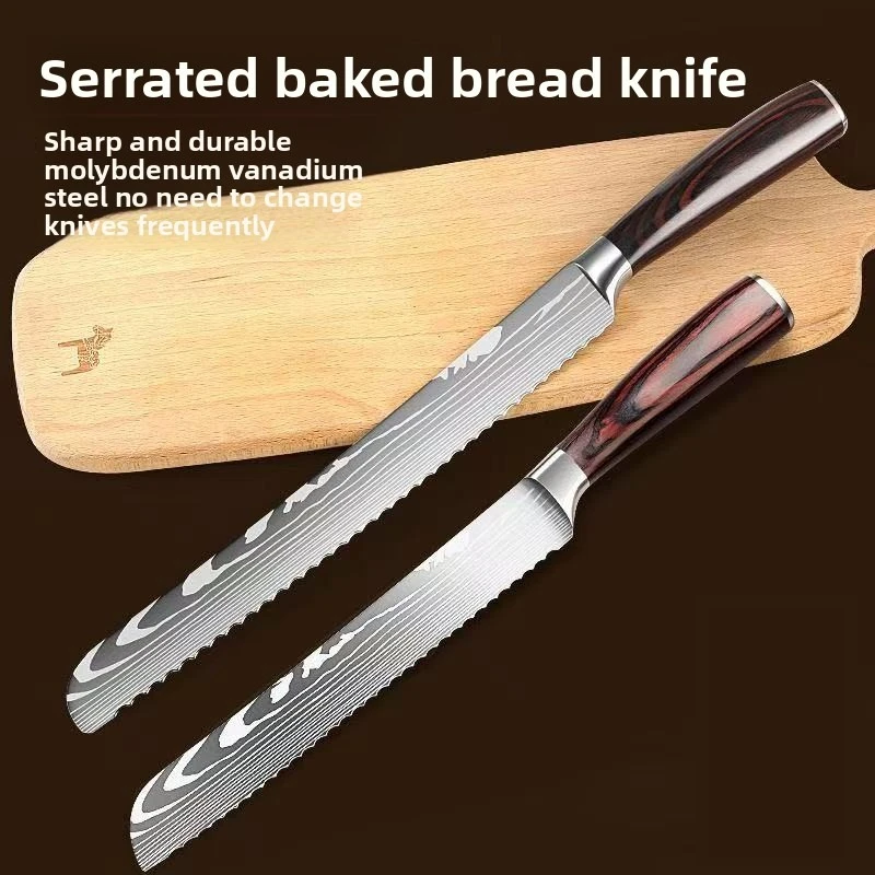 Ostry nóż do chleba Damaly wykonany ze stali nierdzewnej, idealny do pieczenia. Posiada ząbki, dzięki którym łatwo kroi chleb, tosty, ciasta oraz owoce. Narzędzie do kuchni, które zapewnia precyzyjne cięcie bez żużlu.