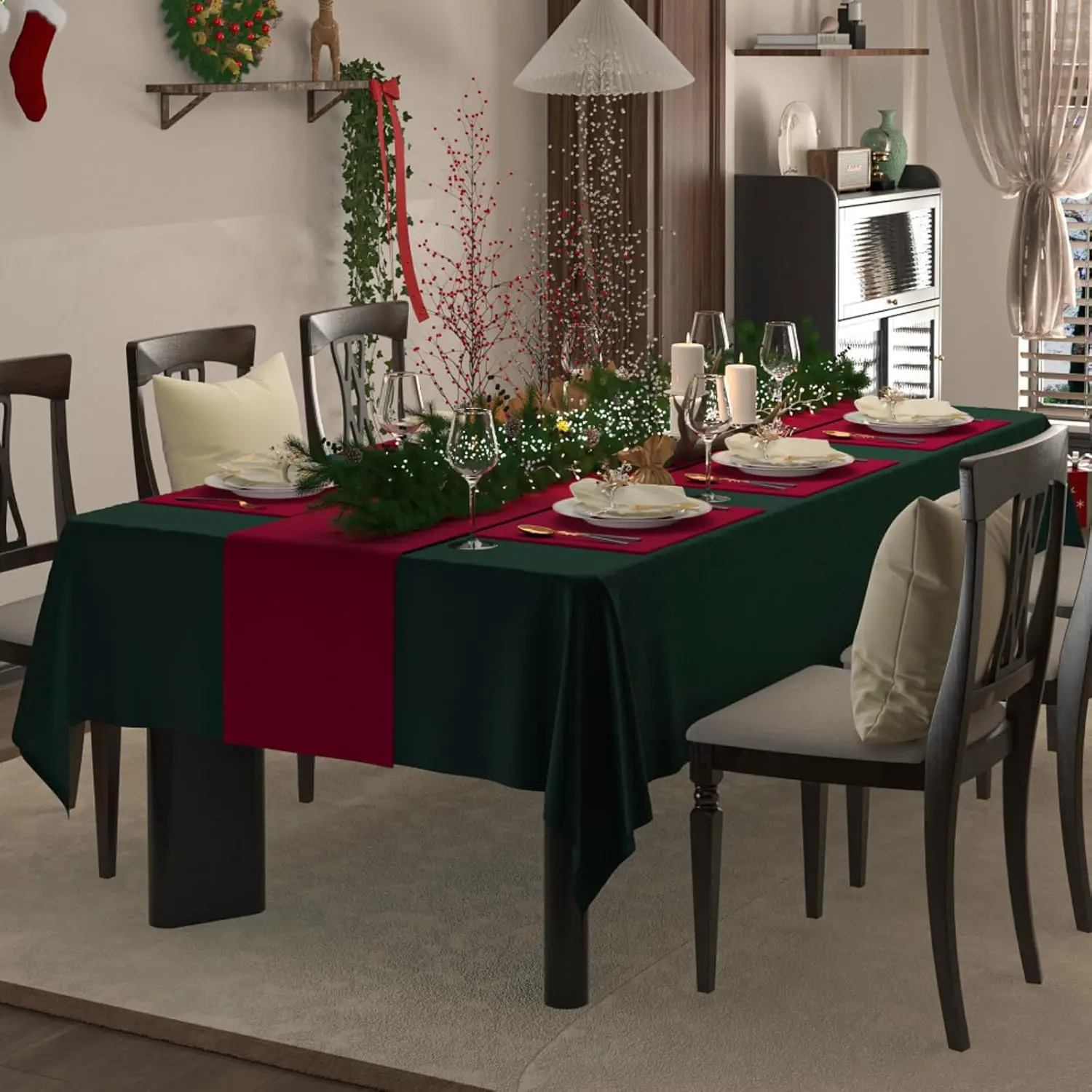 Ten elegancki prostokątny obrus w kolorze myśliwskiej zieleni idealnie nadaje się na świąteczne przyjęcia. Wykonany z kaszmirowej tkaniny o gładkim splocie, jest wodoodporny i odporny na rozpryski, co ułatwia jego utrzymanie w czystości. Po zakończeniu uroczystości możesz go łatwo wyprać, co czyni go praktycznym wyborem na każdą okazję.