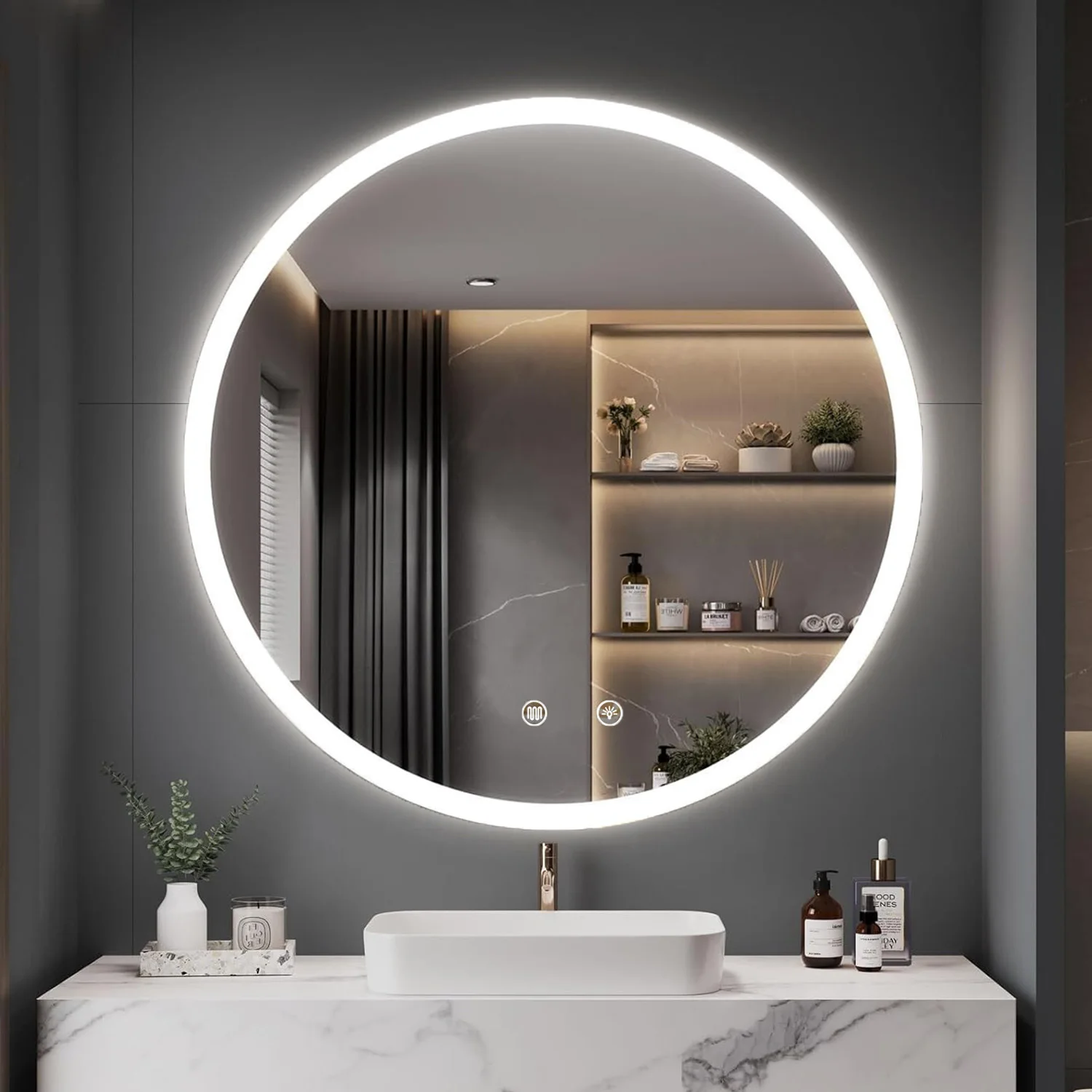 Okrągłe lusterko łazienkowe LED z oświetleniem i funkcją zapobiegania parowaniu