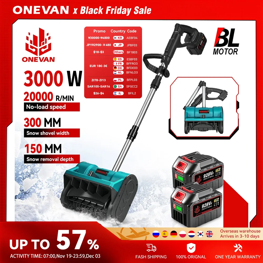 ONEVAN 2500W/3000W Bezszczotkowy Elektryczny Odśnieżacz Spalarka do Śniegu