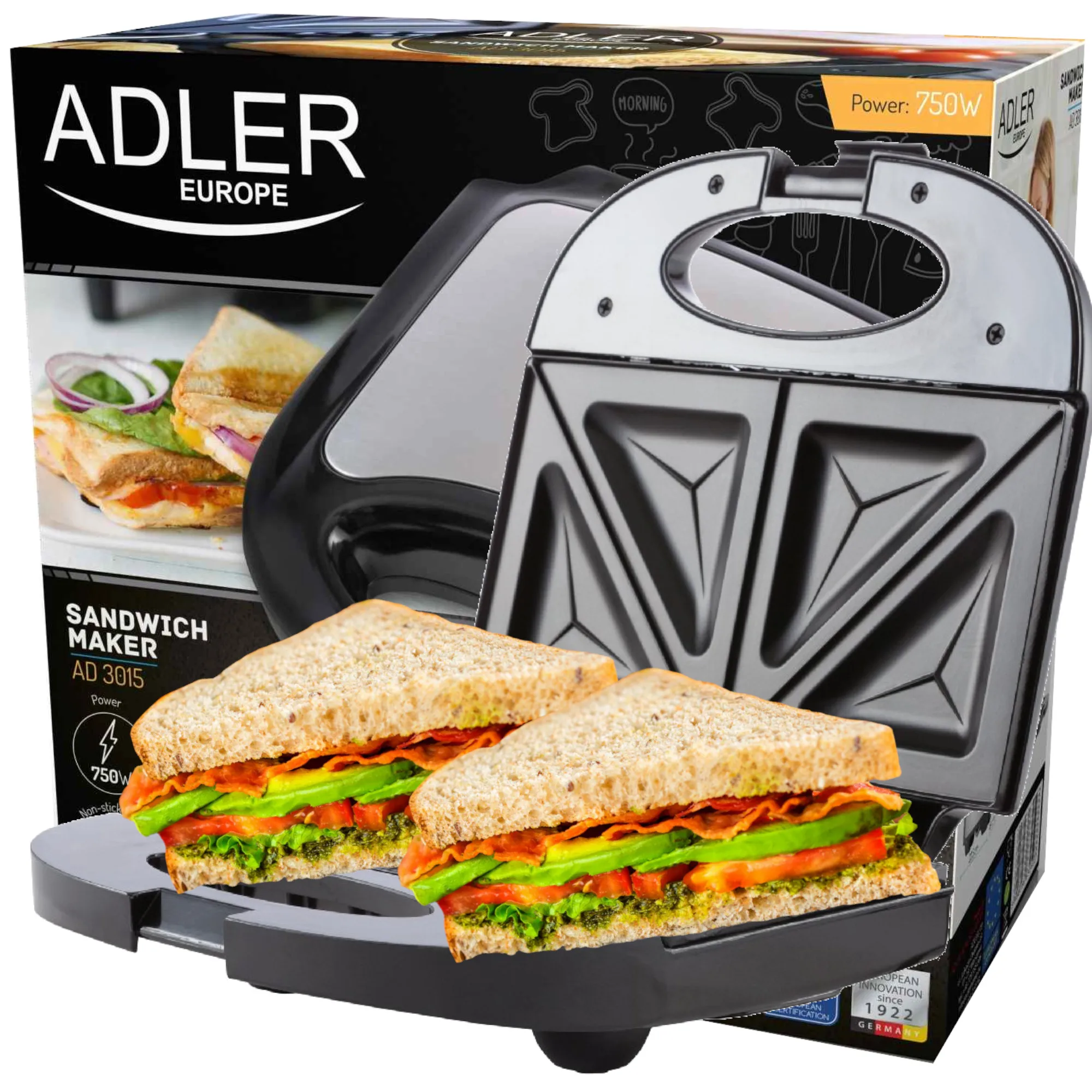 Opiekacz do kanapek o mocy 850W z powłoką nieprzywierającą w kolorze srebrno-czarnym. Posiada antypopoślizgowe nóżki oraz możliwość przygotowania 4 trójkątnych kanapek jednocześnie. Idealny do szybkiego przygotowywania pysznych, ciepłych kanapek w domowym zaciszu.