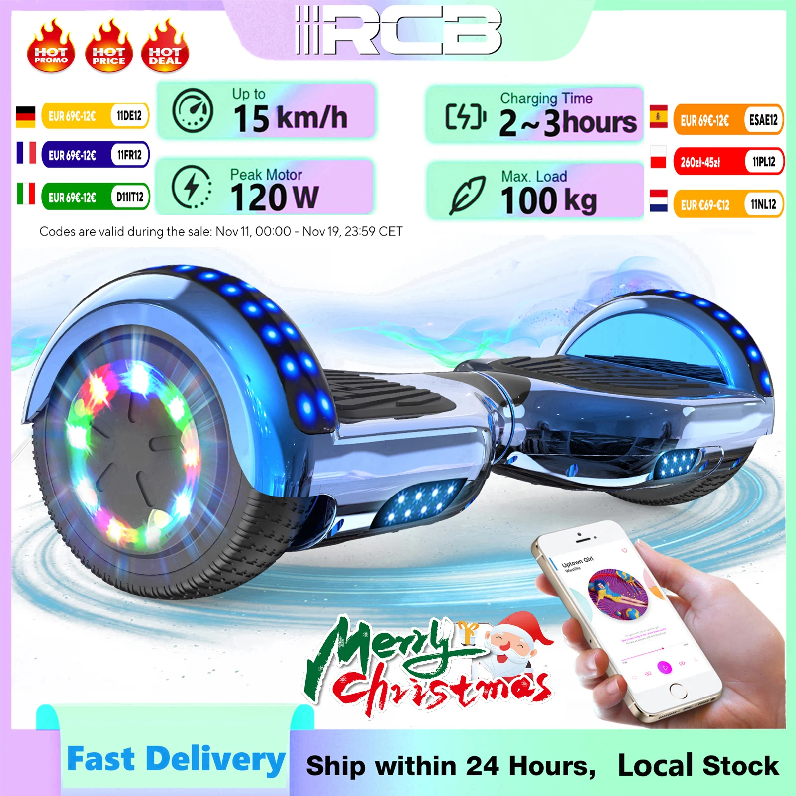 Ten dwukołowy hoverboard to idealny prezent zarówno dla dzieci, jak i dorosłych. Wyposażony w system Bluetooth, pozwala na słuchanie ulubionej muzyki podczas jazdy. Dzięki oświetleniu LED, jazda po zmroku staje się bezpieczniejsza i bardziej atrakcyjna. Doskonały do nauki jazdy i zabawy na świeżym powietrzu.