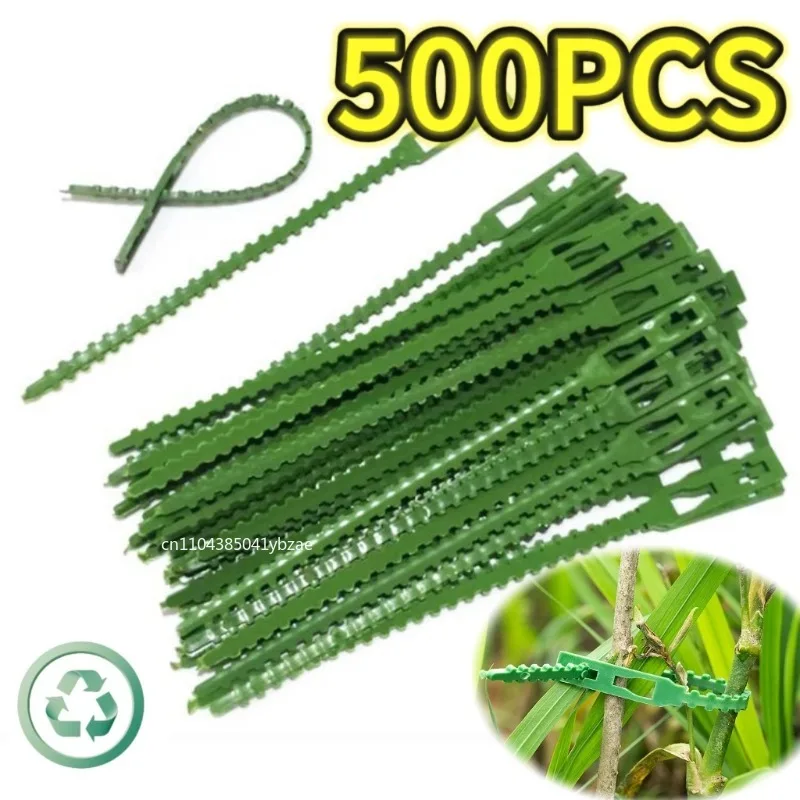 Zestaw regulowanych, wielokrotnego użytku plastikowych opasek do roślin, idealnych do wsparcia wzrostu roślin takich jak pomidory, winorośle czy drzewa. Doskonałe do ogrodu, zabezpieczają pędy i pomagają w ich wspinaczce.
