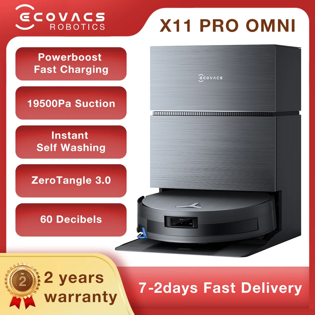 Odkryj moc sprzątania z robotem ECOVACS DEEBOT X11 PRO OMNI. Ten zaawansowany robot sprzątający oferuje moc ssania 19500 Pa oraz innowacyjną funkcję mopowania, co sprawia, że doskonale radzi sobie z każdym rodzajem zabrudzeń. Idealny sprzęt AGD do Twojego domu, który zadba o czystość podłóg, oszczędzając Twój czas i wysiłek.
