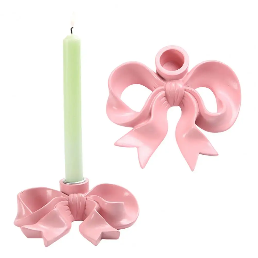 Różowy ceramiczny świecznik w kształcie kokardy