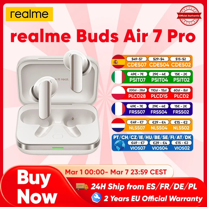 Odkryj nową jakość dźwięku z słuchawkami Realme Buds Air 7 Pro. Wyposażone w zaawansowaną technologię redukcji hałasu 53Db oraz częstotliwość 5000Hz, te słuchawki zapewniają wyjątkowe doznania audio. Dzięki Bluetooth 5.4 możesz cieszyć się stabilnym połączeniem bezprzewodowym, a ich bateria wystarcza na aż 48 godzin użytkowania. Dodatkowo, technologia Hi-Res Lhdc 5.0 gwarantuje doskonałą jakość dźwięku, a odporność na wodę i kurz IP55 sprawia, że są idealne do użytku w każdych warunkach.