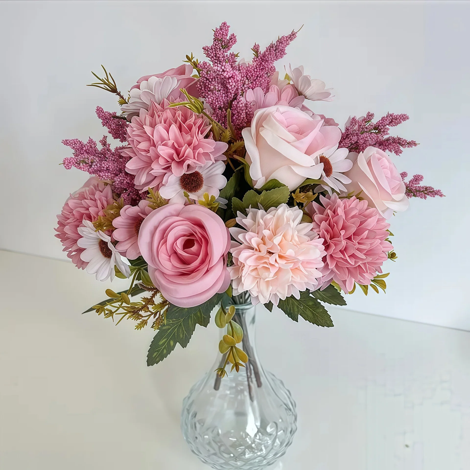 Dekoracyjna sztuczna hortensja w kolorze różowym, składająca się z 7 gałązek. Idealna do trzymania w ręce lub jako element dekoracyjny na ślubach i innych uroczystościach. Wykonana z jedwabiu z dodatkiem suszonych kwiatów, doskonała do tworzenia bukietów oraz jako ozdoba wnętrz.