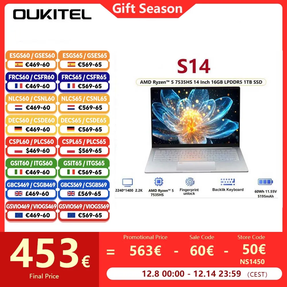 14-calowy laptop Ninkear S14 wyposażony w potężny procesor AMD Ryzen ™ 5 7535HS, 16 GB pamięci LPDDR5 oraz 1 TB SSD. Obsługuje Wi-Fi 6, co zapewnia szybką i stabilną łączność. Dodatkowo, laptop posiada funkcję odcisków palców, co zwiększa bezpieczeństwo użytkowania.