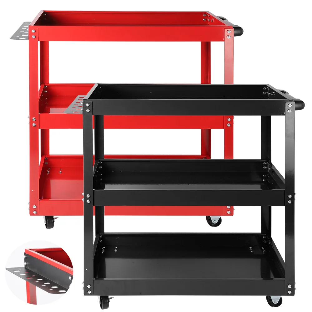 Przenośny wózek narzędziowy z 3 poziomami, idealny do przechowywania narzędzi w garażu lub warsztacie. Wyposażony w kółka, co ułatwia jego transport, a składana konstrukcja pozwala na oszczędność miejsca. Doskonały wybór dla profesjonalistów oraz majsterkowiczów.