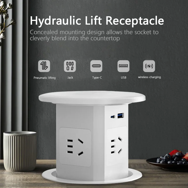 Wysokiej jakości gniazdo elektryczne Uuk, które można wbudować w stół lub biurko. Dzięki wyskakującemu mechanizmowi, gniazdo jest ukryte, gdy nie jest używane, co pozwala zaoszczędzić miejsce i zachować estetykę. Wyposażone w złącza USB, umożliwia łatwe ładowanie urządzeń mobilnych. Aluminiowa półka zapewnia trwałość i elegancki wygląd. Idealne rozwiązanie do nowoczesnych wnętrz.