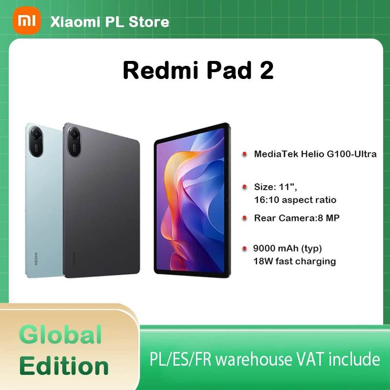 Odkryj Xiaomi Redmi Pad 2 Advanced z potężnym procesorem Helio G100-Ultra. Jego 11-calowy wyświetlacz 2.5K zapewnia niesamowitą ostrość obrazu, a bateria o pojemności 9000mAh pozwala na długie godziny pracy. Dzięki szybkiemu ładowaniu 18W, nigdy nie musisz długo czekać na naładowanie swojego urządzenia. Idealny wybór dla miłośników technologii!