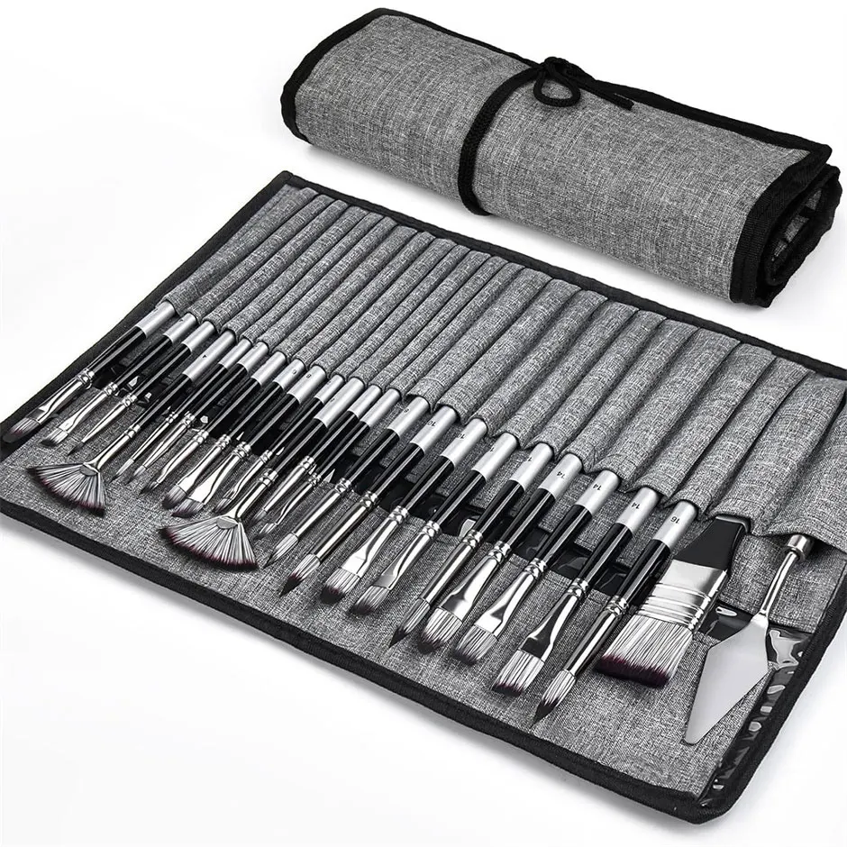 Ten kompletny zestaw zawiera 24 wysokiej jakości pędzle artystyczne, nóż malarski oraz poręczną torbę, idealny do akrylu, akwareli, malarstwa olejnego i innych technik plastycznych. Doskonały wybór dla zarówno początkujących, jak i doświadczonych artystów.