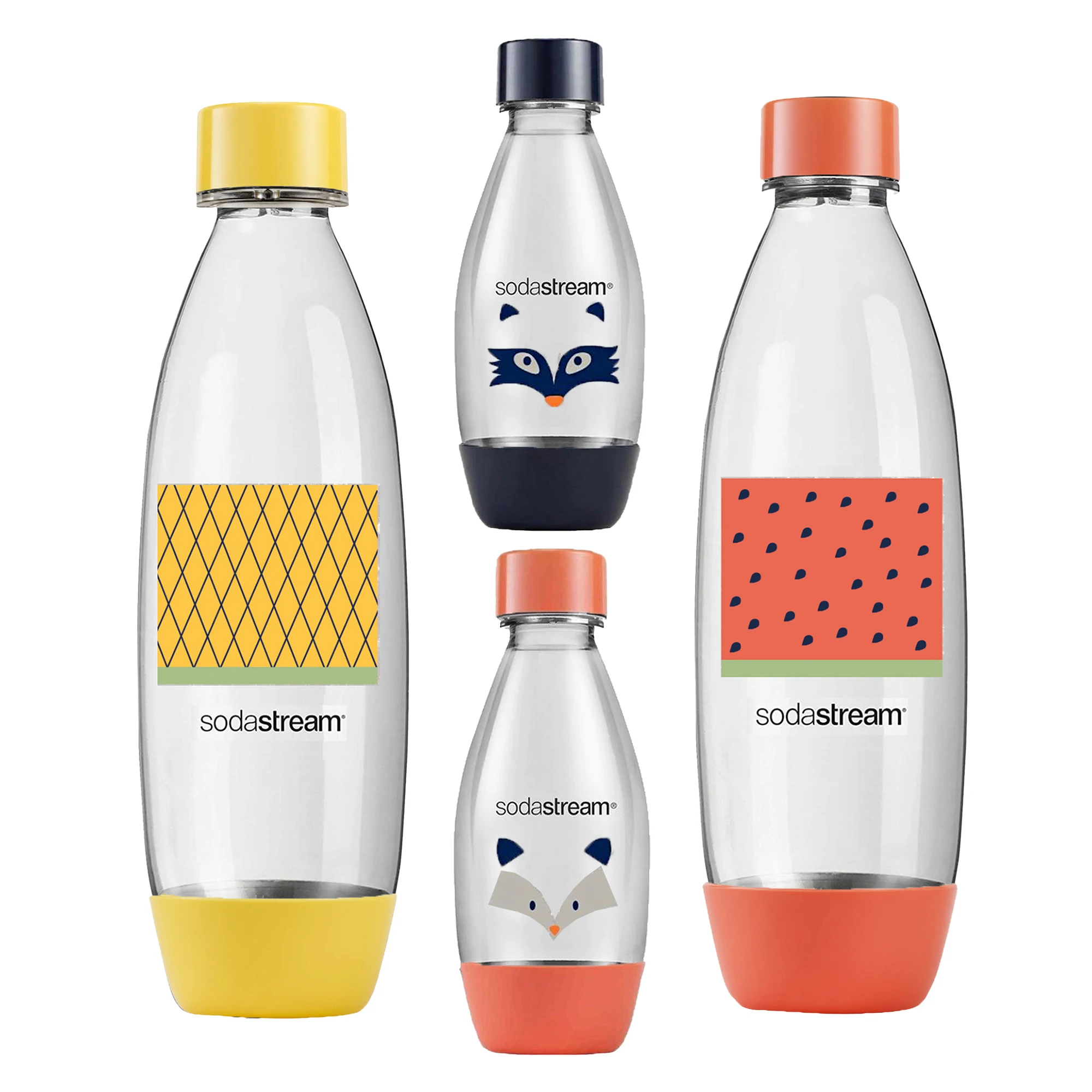 Zestaw składający się z czterech butelek do saturatora SODASTREAM, idealny do przygotowywania własnej wody gazowanej w domu. W skład zestawu wchodzą dwie butelki o pojemności 1 litra oraz dwie butelki o pojemności 0,5 litra. Butelki są przystosowane do zmywarki, co ułatwia ich czyszczenie i dbanie o higienę. Dzięki nim zawsze będziesz mieć pod ręką świeżą, musującą wodę.