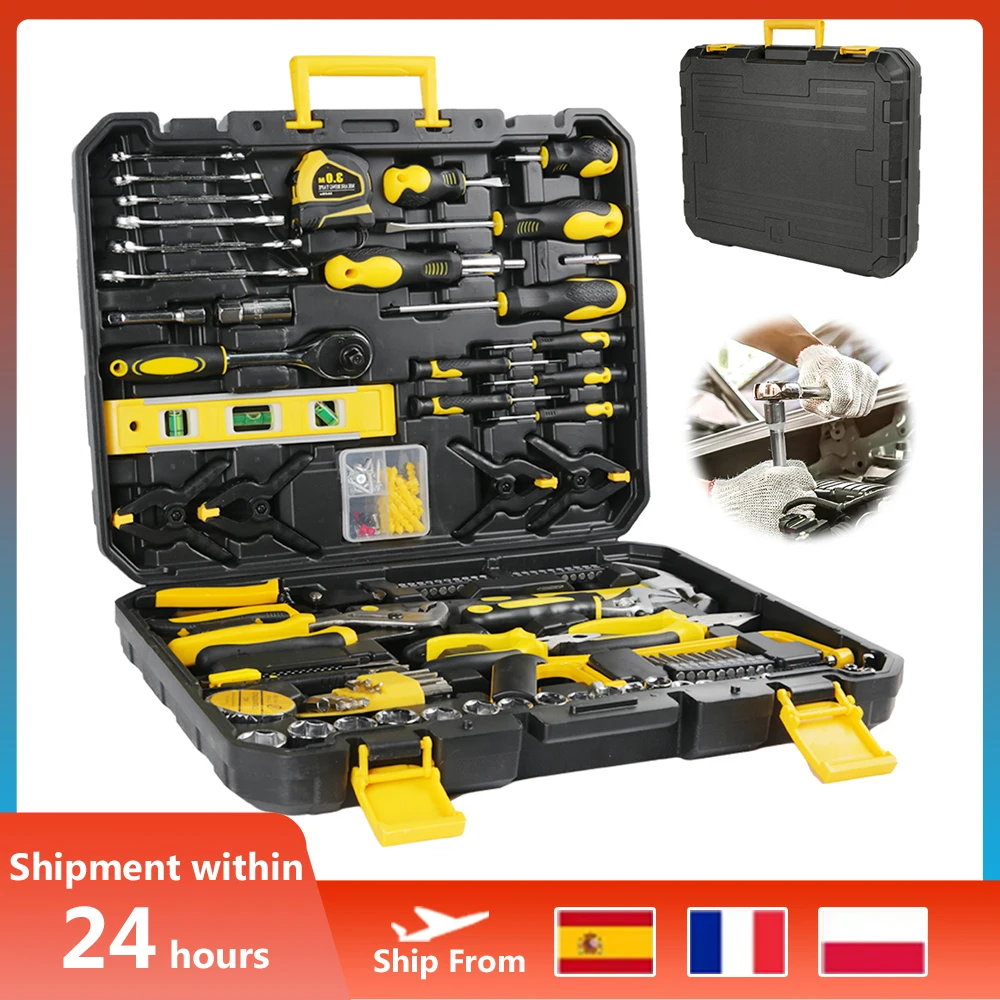 Kompletny zestaw narzędzi ręcznych składający się z 158 elementów, idealny do naprawy samochodów oraz prac domowych DIY. Zestaw zawiera różnorodne klucze nasadowe, klucze, śrubokręty oraz nasadki, co czyni go niezbędnym dla każdego majsterkowicza. Dzięki wysokiej jakości materiałom, narzędzia są trwałe i niezawodne.
