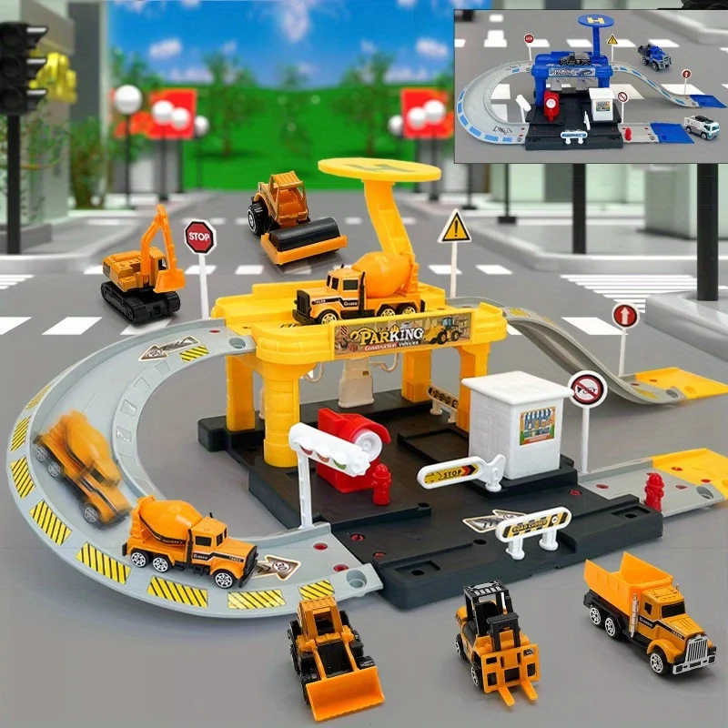 Zestaw torów samochodowych z symulowanym parkingiem – edukacyjne zabawki dla dzieci